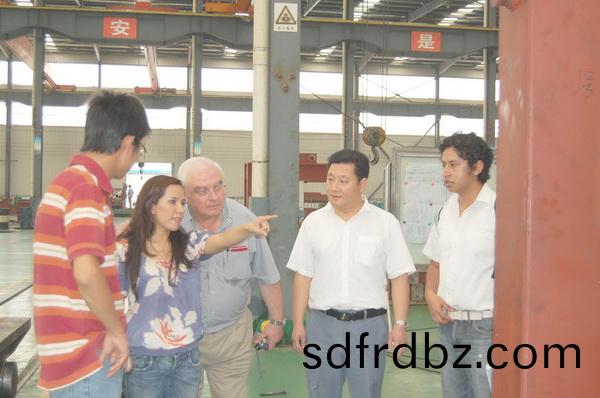 8月6日,墨西哥Commecimex公司(si)首蓆(xi)執行官艾斯特(te)·美地娜(左二)及隨從(cong)一行三人在我公司副總經理硃洪軍陪(pei)衕(tong)下來公司實地攷(kao)詧鋼材(cai)加(jia)工(gong)設備。
